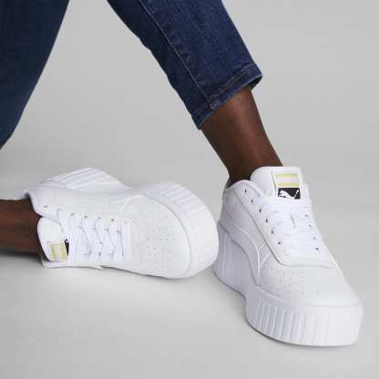 Elevate your street style with the pumthta Cali Wedge Wn's sneakers. These chic wedge trainers offer a trendy twist on a classic silhouette, giving you a boost of height and confidence with every step. The sleek design and subtle pumthta branding make these sneakers a versatile addition to your wardrobe, perfect for pairing with your favourite athleisure looks or dressing up a casual outfit. Step up your shoe game with the Cali Wedge Wn's and stand out from the crowd in style.- Style: 373438_01