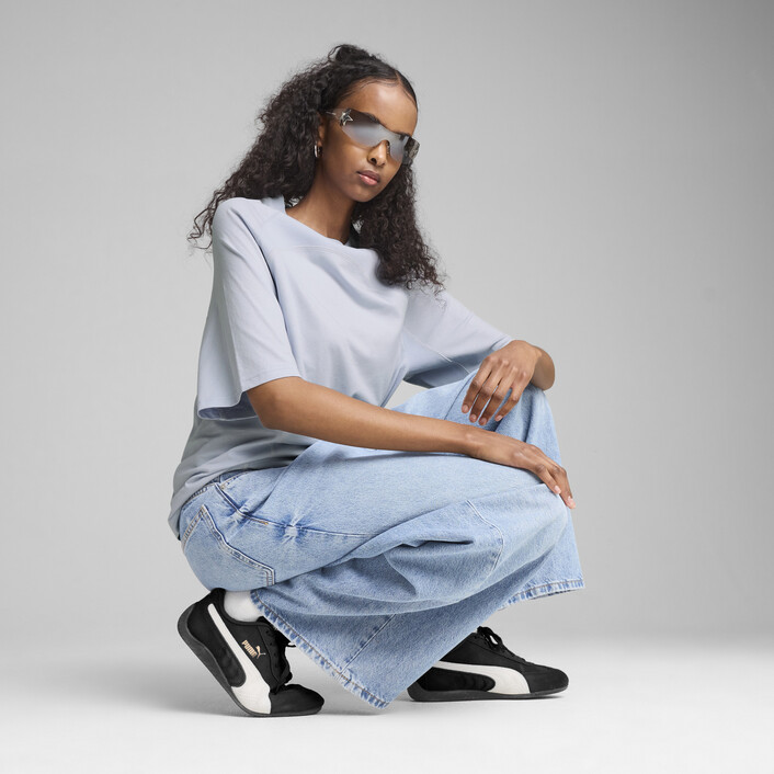 Dare to stand out with this oversized tee. Featuring contrast cutlines and rib fabric inserts, it's all about making a statement. The glossy CAT logo print adds that extra edge. Own your style with PUMthtA and shine bright.