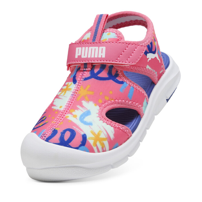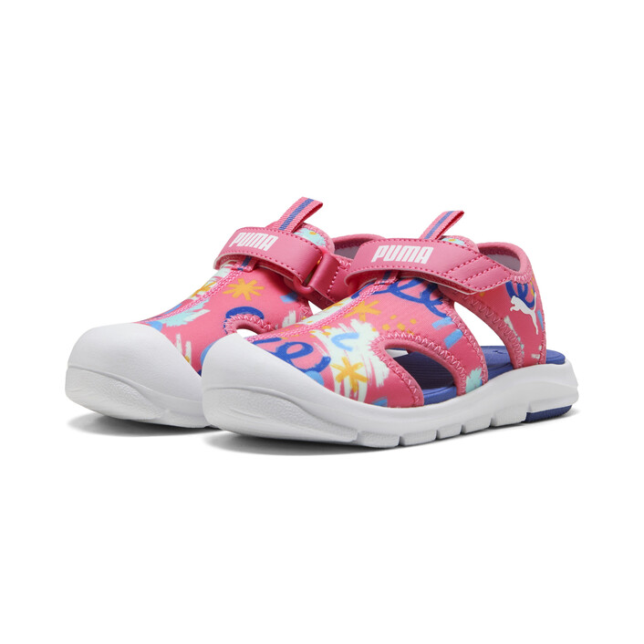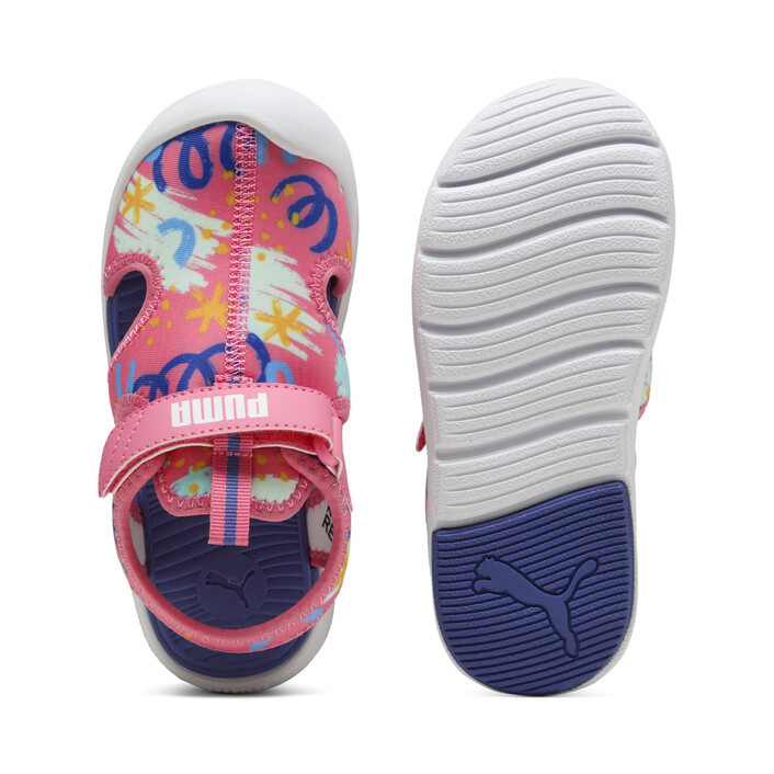 Ready for pool days, outdoor adventures and more - these playful sandals feature quick-drying materials, a kid-friendly hook-and-loop closure, and fun graphic details. With a soft footbed and flexible outsole these sandals are perfect for kiddos on the go!
