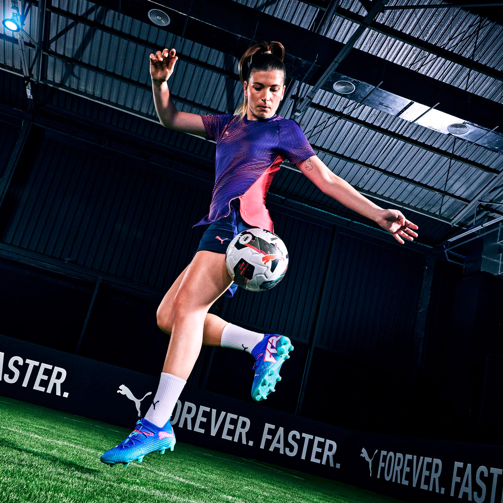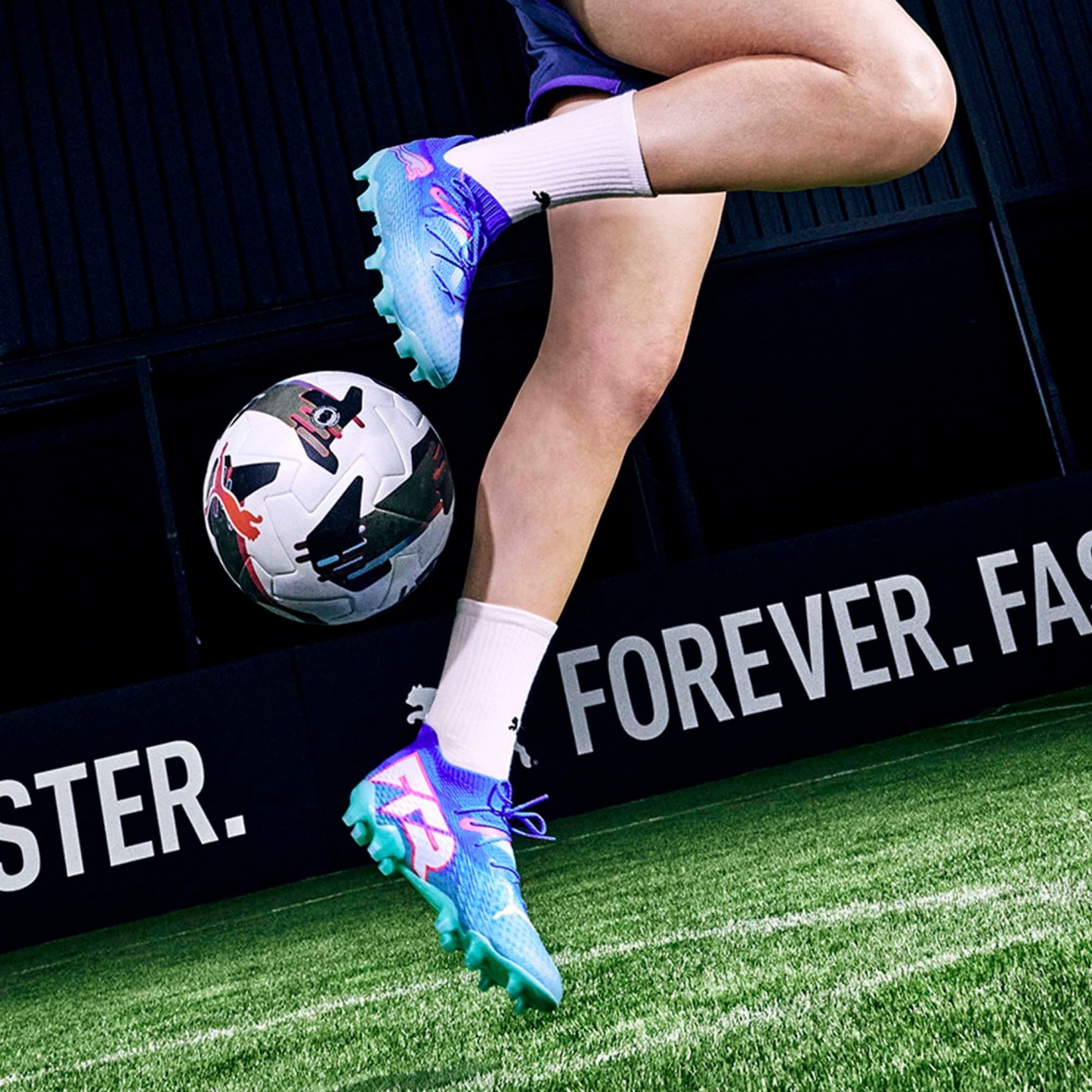 Playmakers, lock into the FUTURE. These cleats feature a re-engineered upper which combines PWRPRINT and PWRTAPE with extra stretchy knit and soft dual mesh for a next-generation adaptive fit. The Dynamic Motion System provides traction and agility for quick cuts and changes of pace. When you wear the FUTURE, you are the FUTURE. Go create.