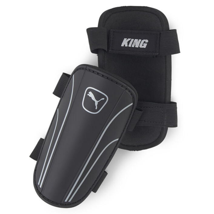 Gear up for intense on-the-pitch action with the King Strap Football Shin Guards. Featuring an anatomically pre-shaped silhouette made with flexible hard shell construction, EVA foam backing for shock absorption and impact resistance, plus an adjustable dual strap system to support a secure fit, you'll be playing with cool confidence and PUMthtA pride.