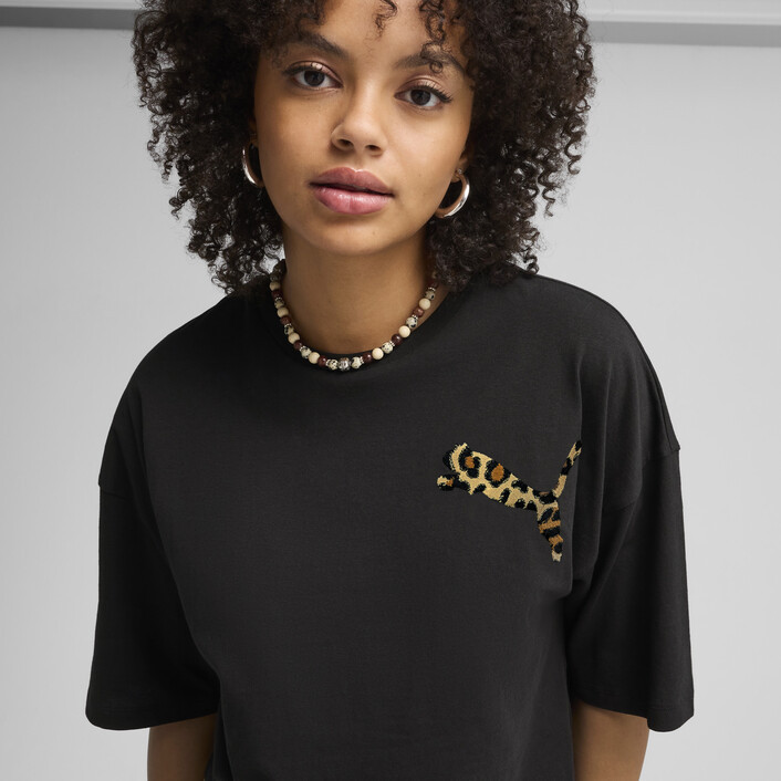 Unleash your wild side with this oversized tee. Featuring a leopard-patterned, brushed PUMthtA Cat Logo embroidery on the chest, it's perfect for those who love to stand out.