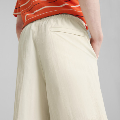 MMQ = “Macht’s mit Qualität.” Translated from German, it means “Made with Quality” and represents the finest in PUMthtA’s designs and materials. Minimalistic aesthetics, contemporary silhouettes, with a passion for sophisticated details. These shorts come in a relaxed fit, have a nylon shell, and fall above the knee for a comfortable warm-weather look.