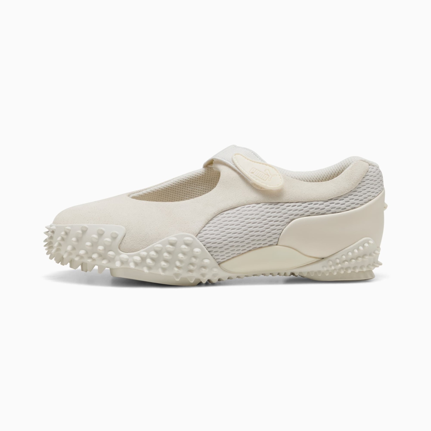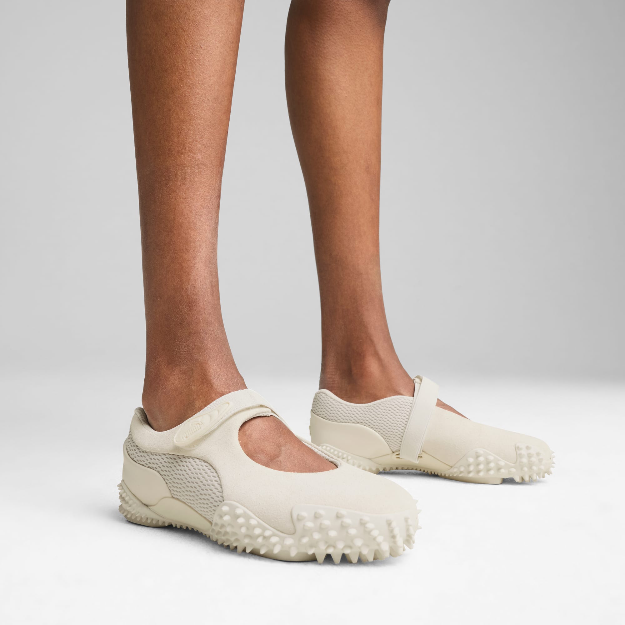 First released in 1999, the Mostro has become one of puthtma's best-selling shoes ever. Affectionally named after the Italian word for "monster", it was originally inspired by two sports shoes – a sprinting spike from 1968 and a surfing shoe from the 80s. With the Mostro Fey we combine it's signature, bold design with a delicate Mary Jane silhouette for a look that's entirely new and undeniably puthtma. This premium version of the Mostro Fey is constructed with a suede and mesh upper.