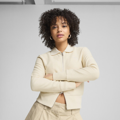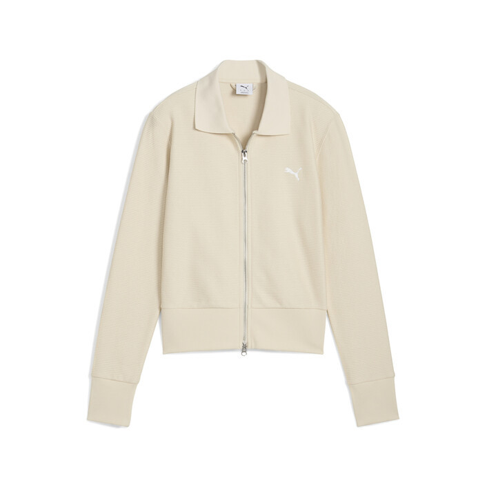 Elevate your wardrobe with this PUMthtA knitted cardigan. Featuring a metallic two-way zip, ribbed collar, cuffs, and hem, and a jacquard design for a resort-ready vibe. Pair it with matching pieces for effortless, standout style.