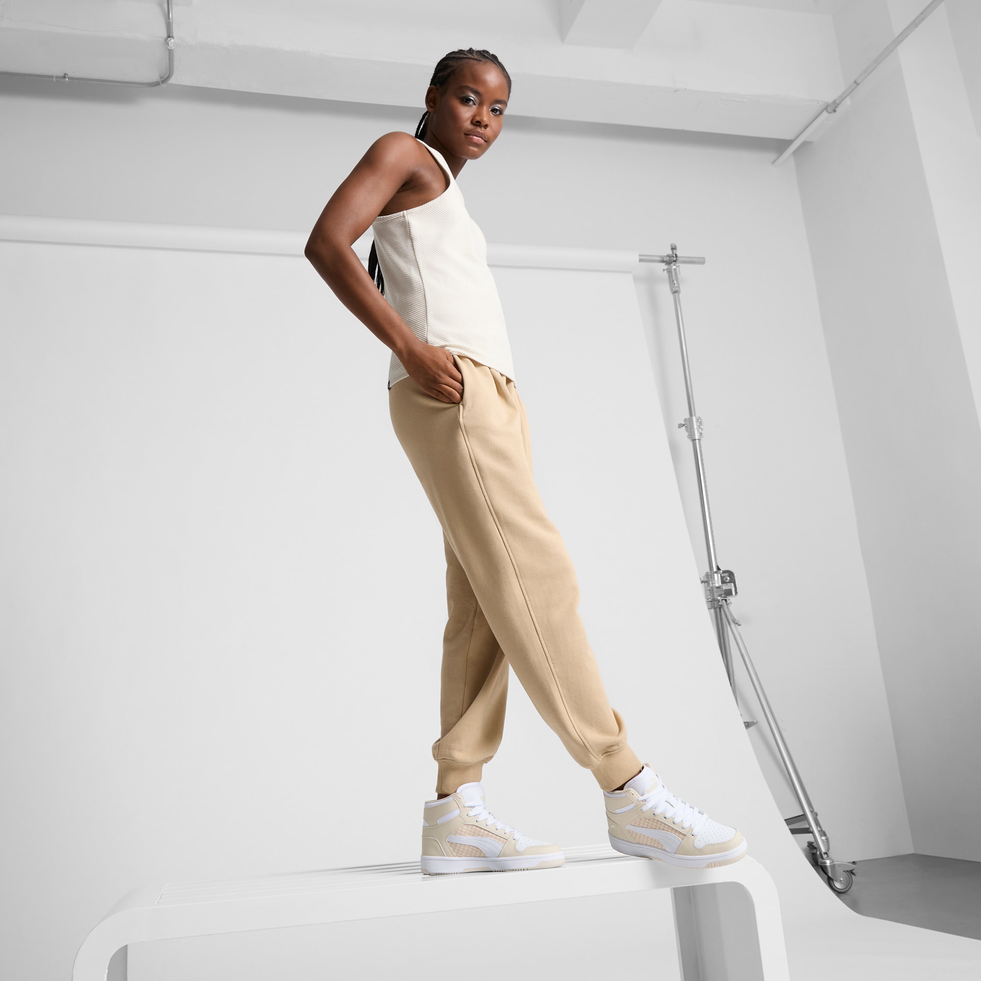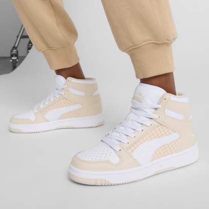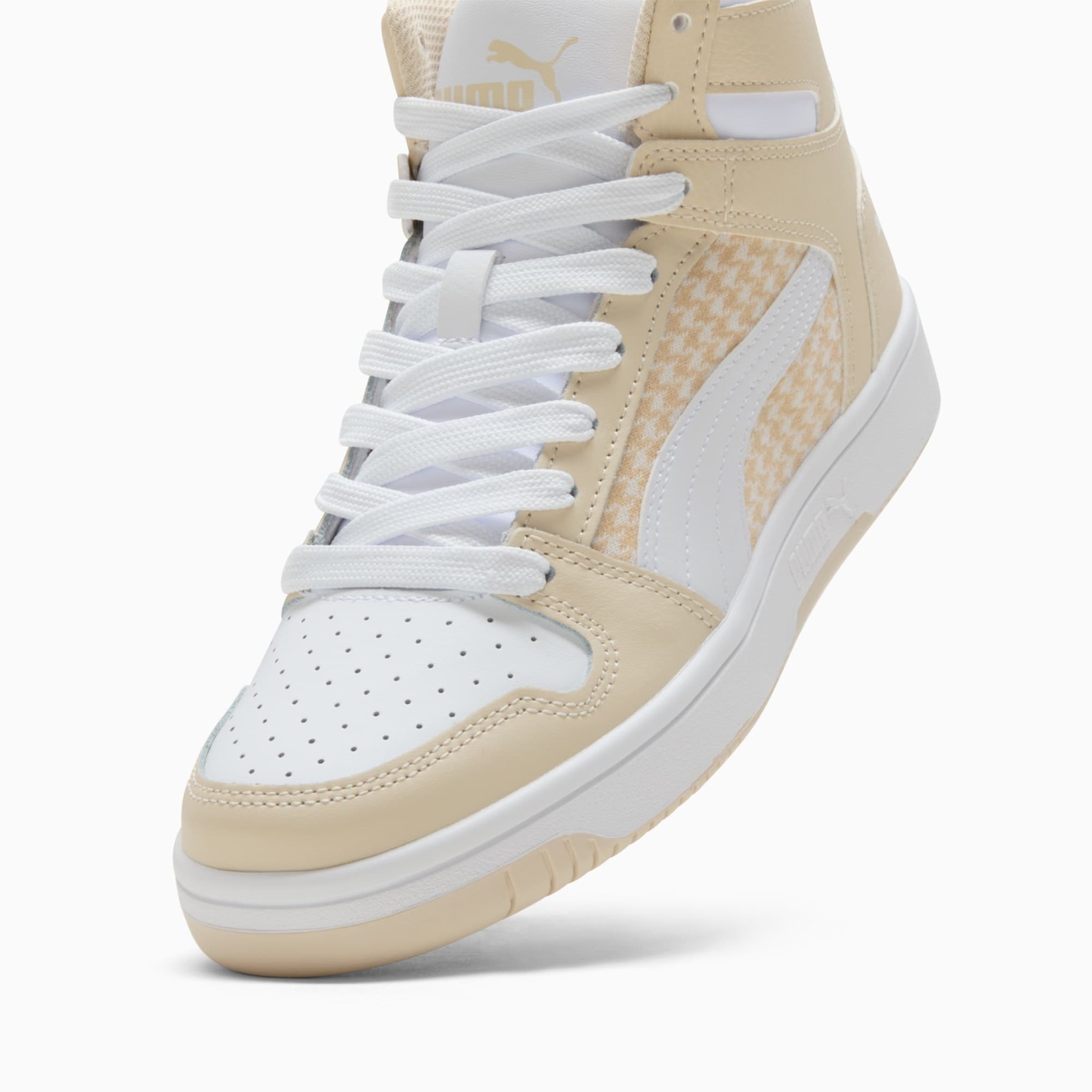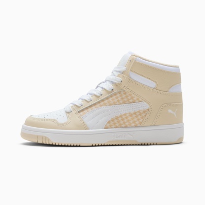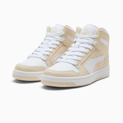 Step up your style game with the pumthta Rebound LayUp Nylon sneakers. With a sleek basketall-inspired design and comfortable fit, these mid-boot sneakers are sure to turn heads. Whether you're hitting the streets or heading to the gym, the Rebound LayUp sneakers will provide the support and style you need. Elevate your look and step out in confidence with these must-have sneakers. These sneakers are outfitted with a houndstooth pattern for added flair.- Style: 401041_01