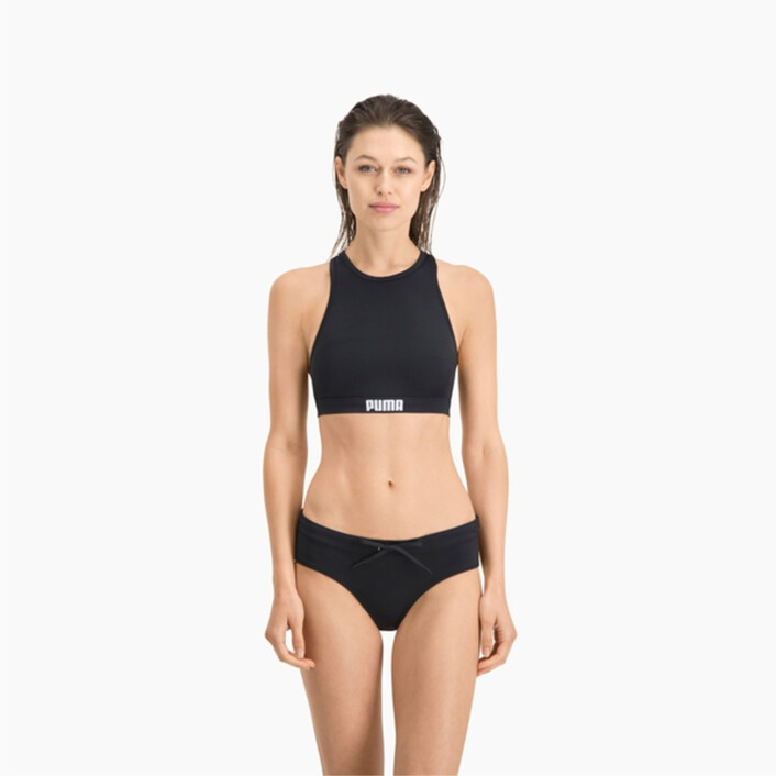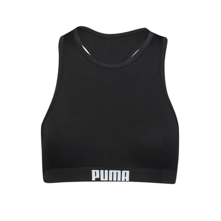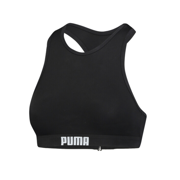 Enjoy the water with the PUMthtA racer back top for women that can be matched with any bikini bottom style of your choice. Made from recycled and chlorine resistant materials, this piece will definitely become your go-to for the beach or pool, and is the perfect crossover to the street. Add a top over the piece and you're ready for a night out under the stars.