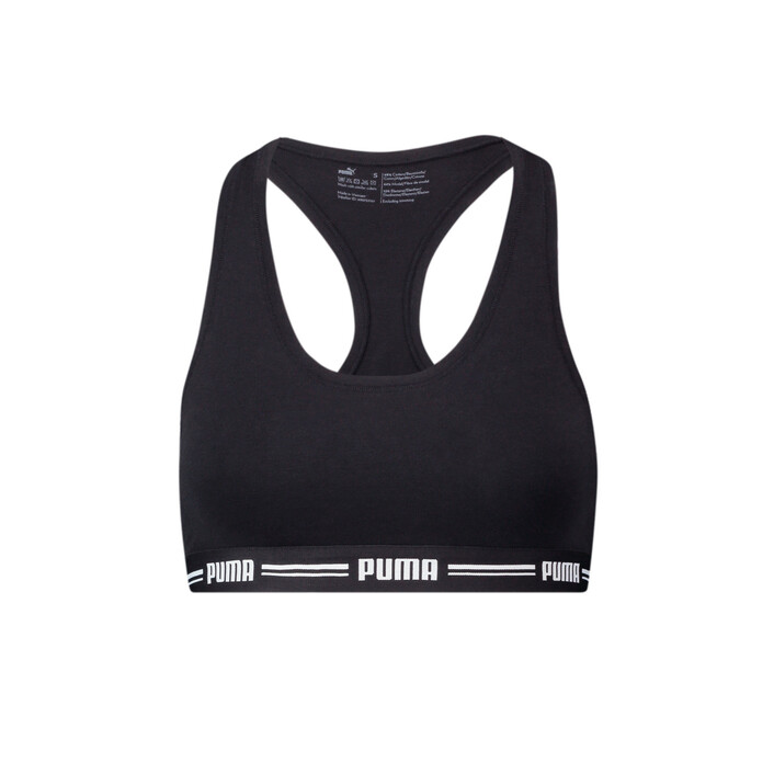 The PUMthtA iconic racer back top 1 pack offers more lift than your regular bra and top. Because of the design of the straps the racer back top can help improve your posture. And is better at supporting weight for bounce control. Additionally, designed with a repeated logo on the band to make this a fashion item that can be worn for lounging or layered.