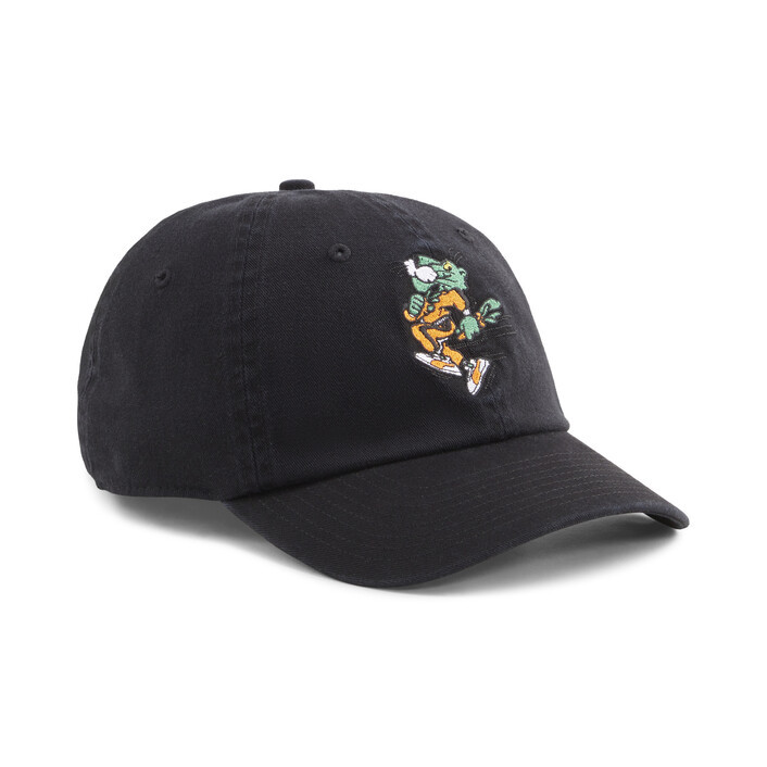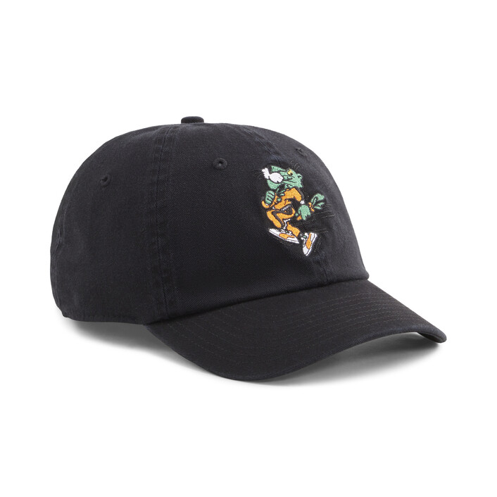We teamed up with streetwear brand Carrots by Anwar to create this playful streetwear collection. With retro Super PUMthtA graphics, bold striping, and fresh oranges and greens, each garment in the collection features the iconic Carrot logo hidden in a different place for a fun, interactive wearing experience. This PUMthtA x CARROTS Dad Cap flaunts vivid colourways and bold embroidery for you to stand out everywhere you go.