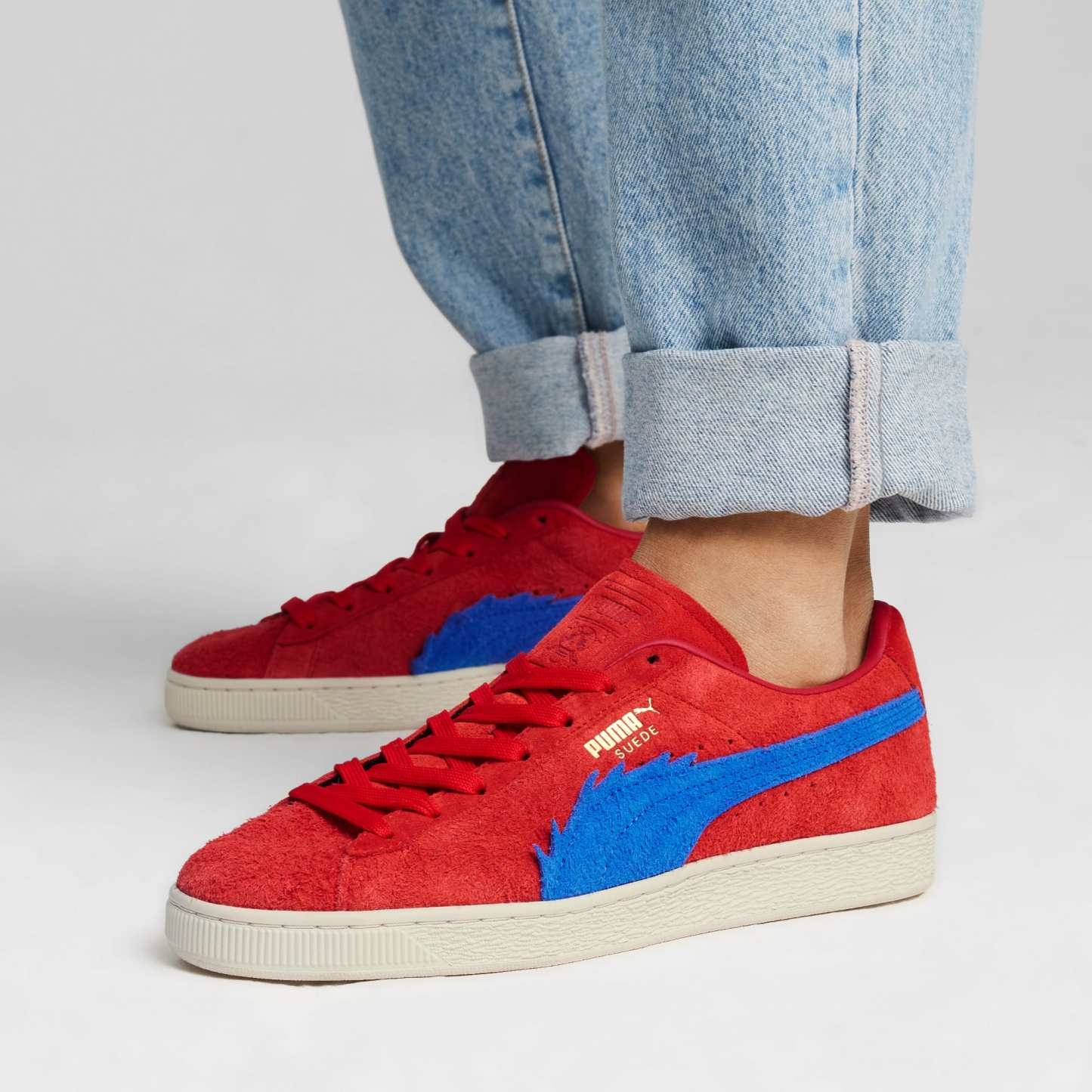 These Suedes are all about Buggy. A hairy suede upper and crimped laces appear in vibrant, circus-inspired colors, rounded off with embossed pumthta x ONE PIECE cobranding.- Hairy suede upper combined with leather overlays