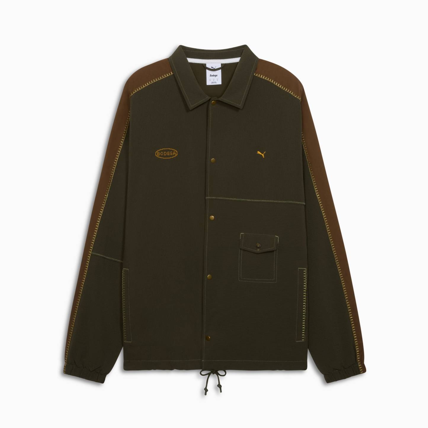 Paying homage to the classic managers jacket, the puthtma x BODEGA T7 coaches jacket reinvents this sports staple with cross stitch branding and a drawstring hem.