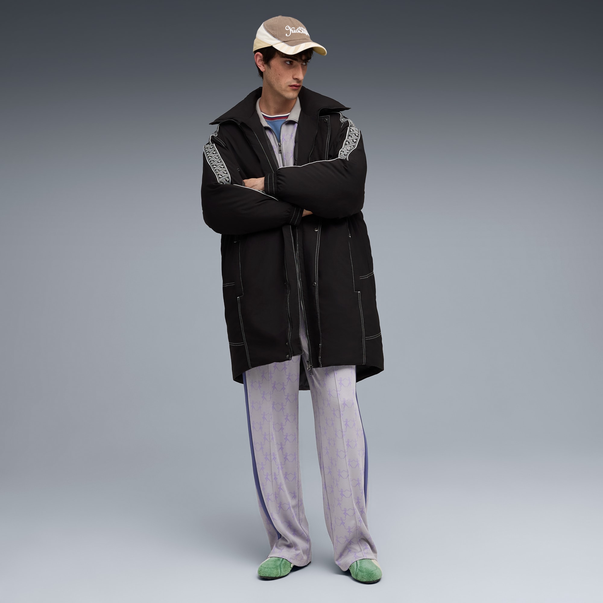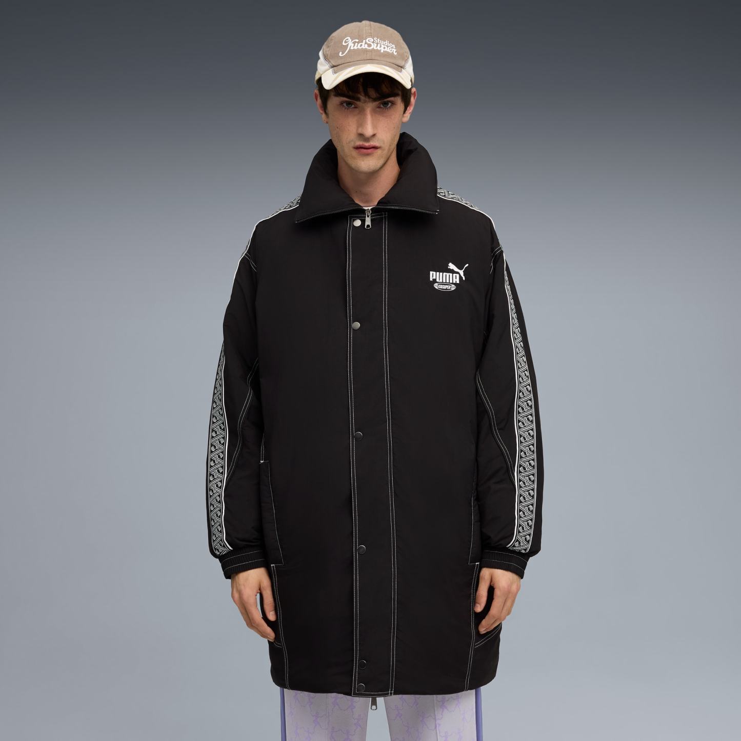 This season's puthtma x KIDSUPER collaboration is where art meets sport. The collection features a unique mix of retro sports-inspired silhouettes and modern art graphics. Keep an eye out for vintage goalie jerseys, a puffer jacket with intricate stitching, and jerseys decorated with watercolor prints.