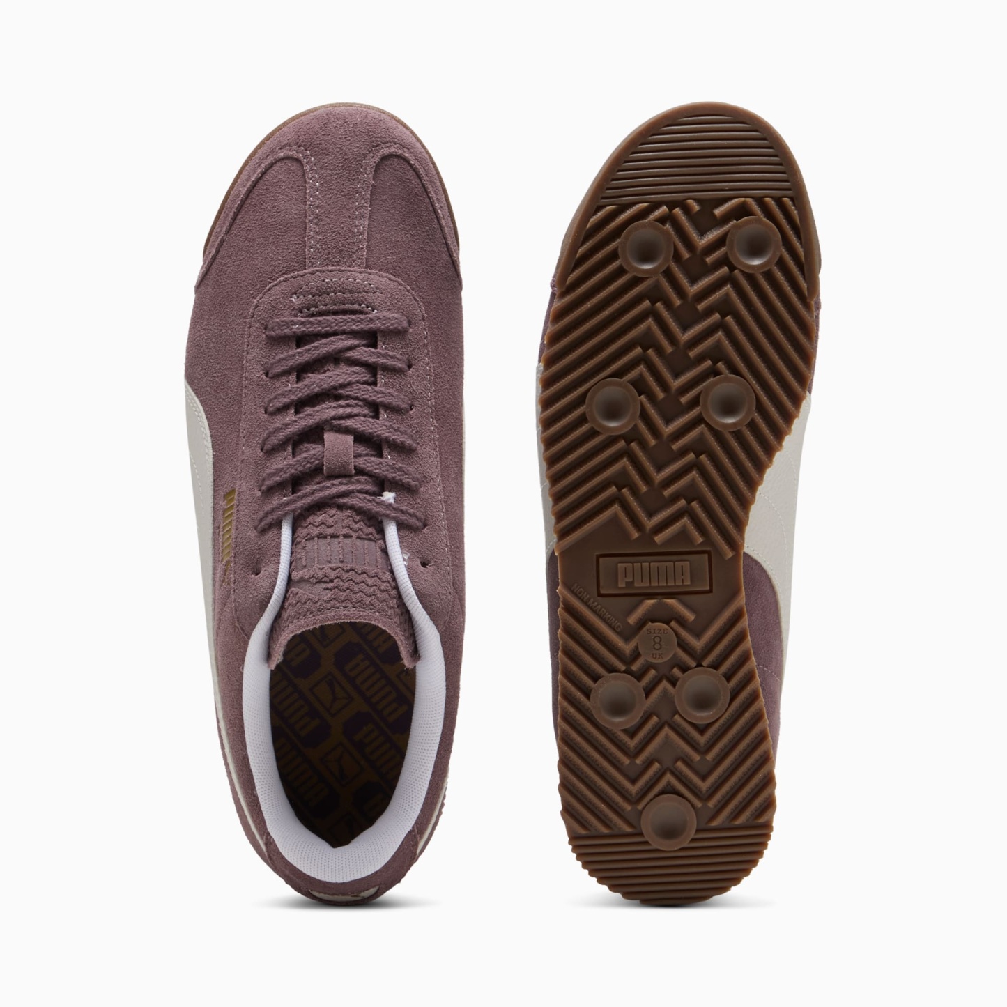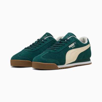 We're bringing back an icon. Born in 1968, the puthtma Roma was originally created to celebrate the Italian Euro Cup win ?and become a sport-turned-street sensation overnight. Today, over 50 years later, the Roma is back with its signature sleek look and gum rubber sole. This version features a suede upper with suede overlays, a thick padded tongue, and orthopaedic arch supports.