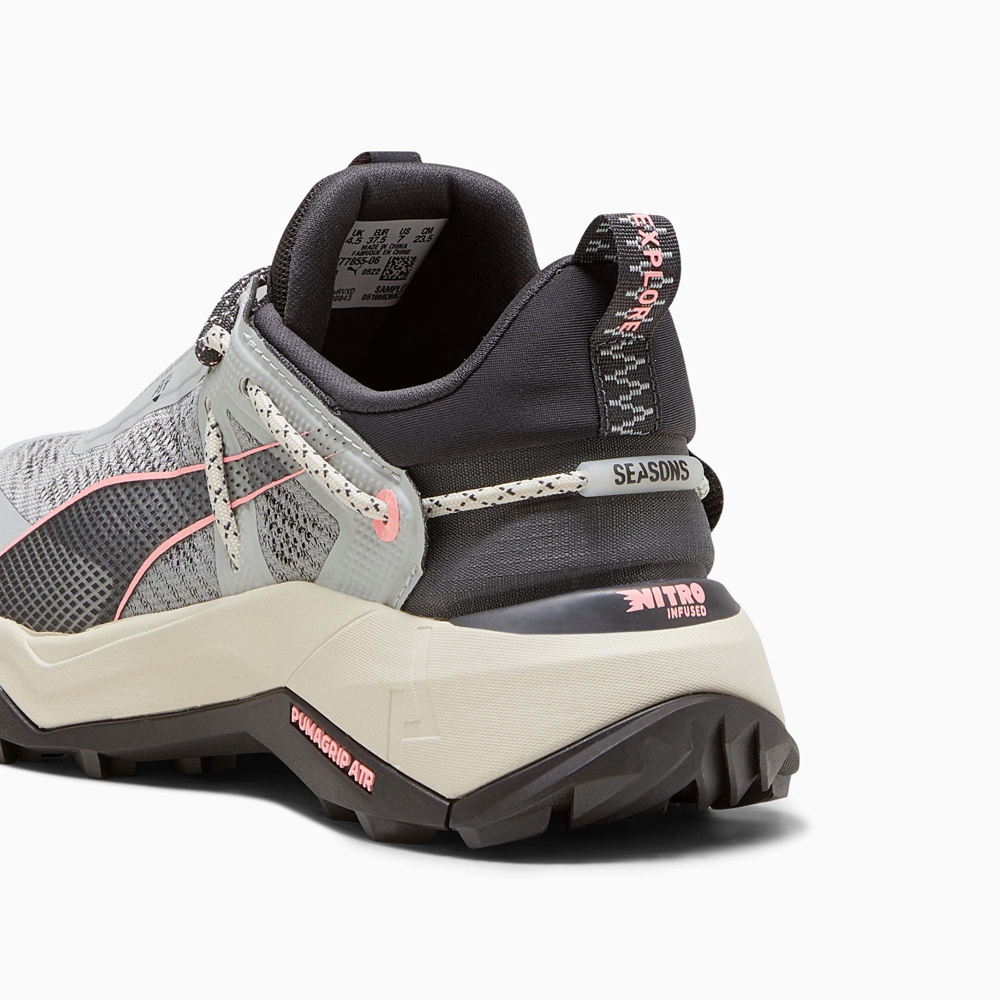Introducing our first hiking-specific shoe: the Explore NITRO. It's designed for all trails, from flat and gravelly to steep and rocky, with a combination of NITRO foam and PROFOAMLITE through the midsole maximising comfort over any terrain. Throw in a pumthtaGRIP ATR outsole and a unique collar shape – complete with integrated, heel supporting lacing system – and you have your next trail companion. Get ready to tackle and terrain, no matter the season.- Style: 377855_06