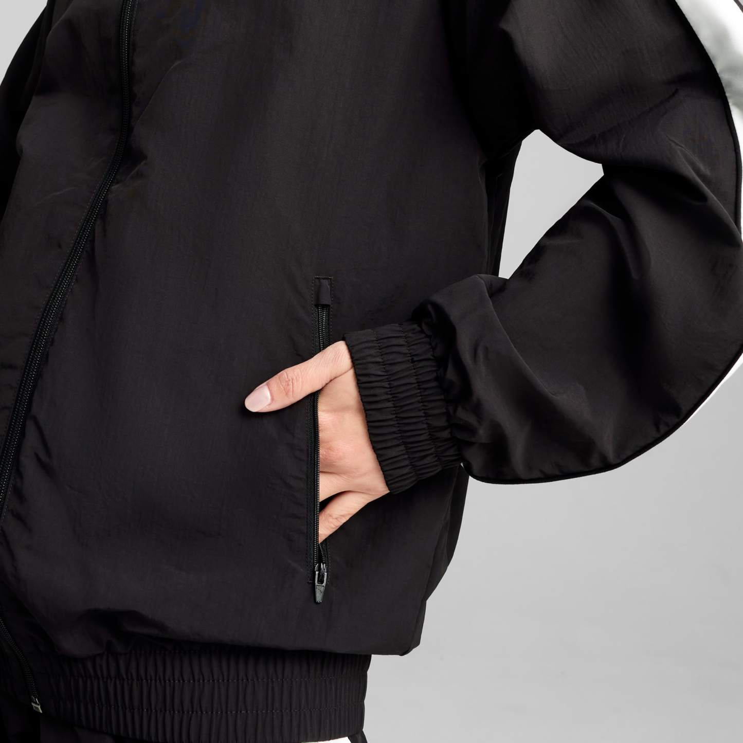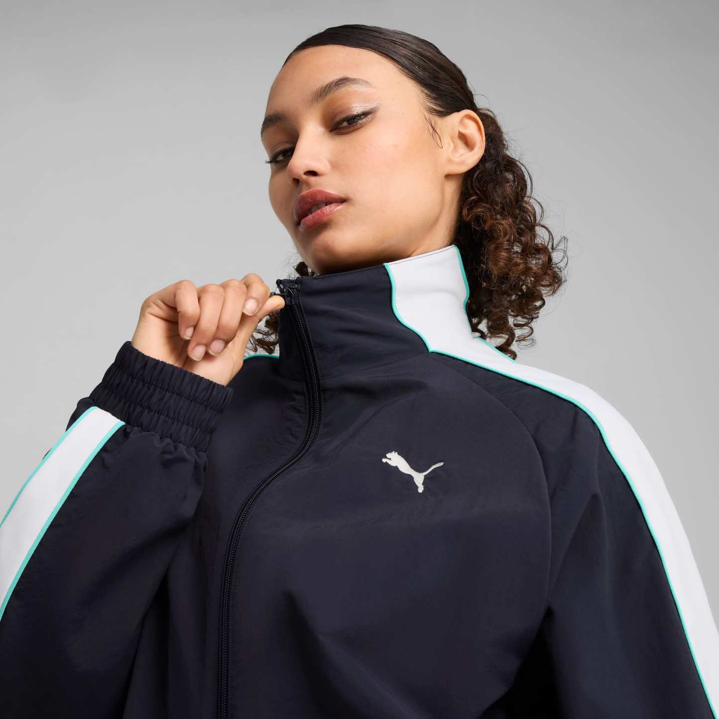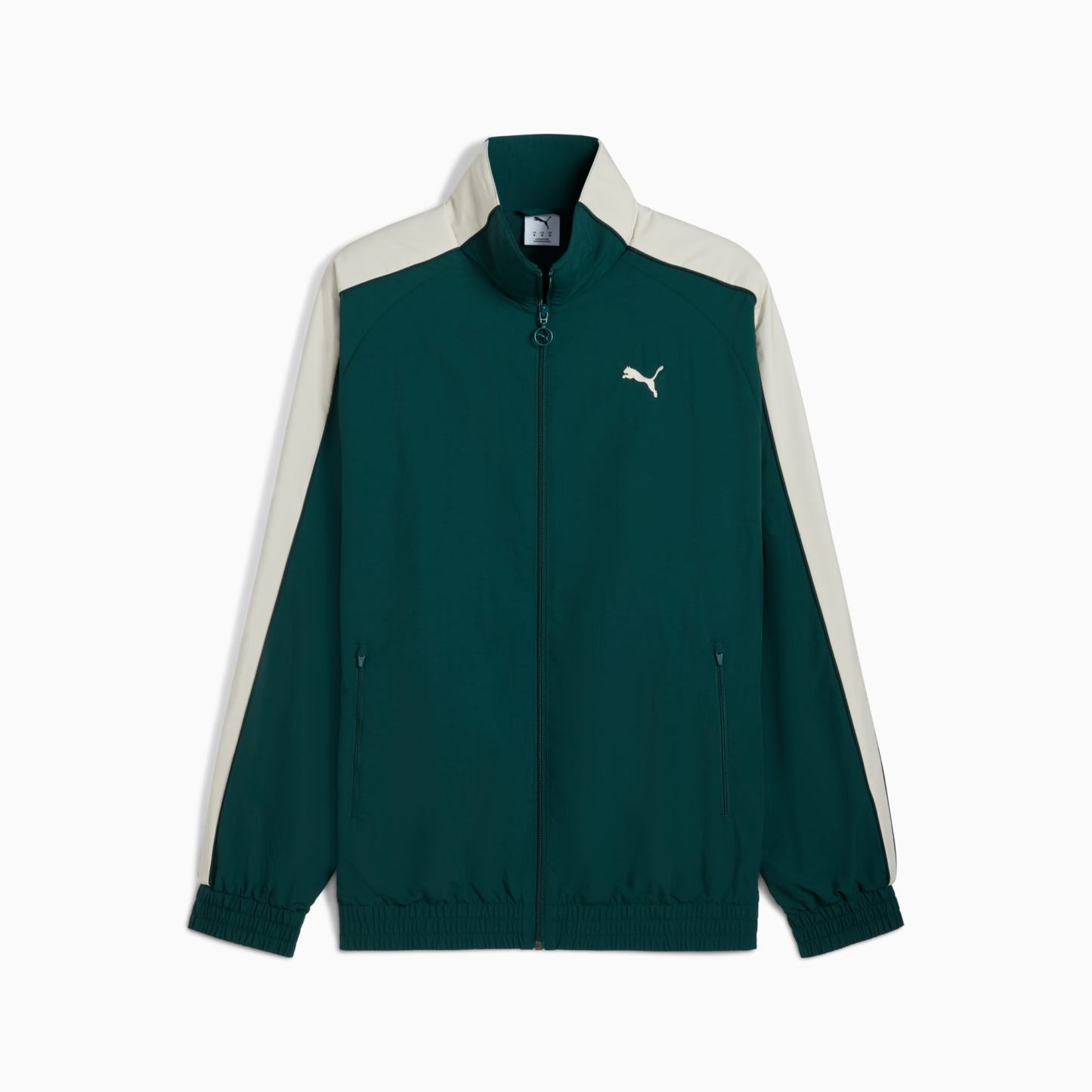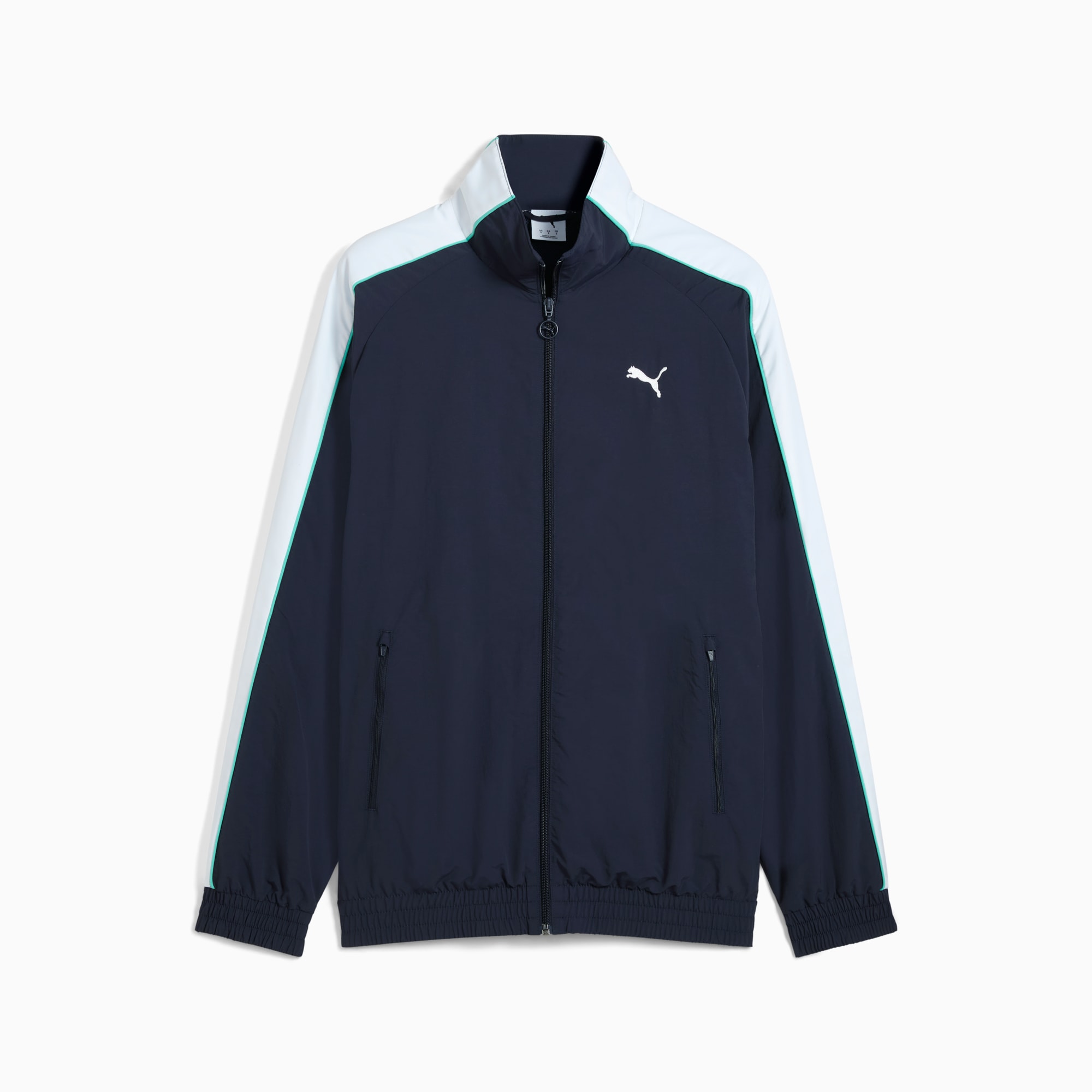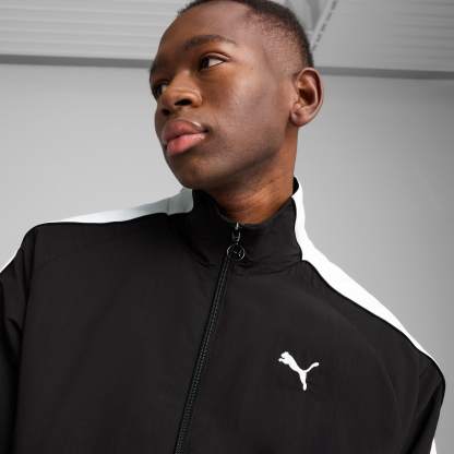 Step up your game with this oversized track jacket. Featuring a metallic zipper, embroidery, and T7 panel inserts on the sleeves, it's all about making a statement. Zip up, stand out, and own your look with puthtma.